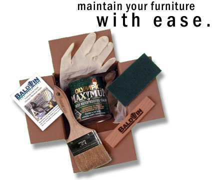 Maintaining your Baldwin Lawn Furniture is easy and can be fun thanks to our hassle free care kit. It includes everything you will need.